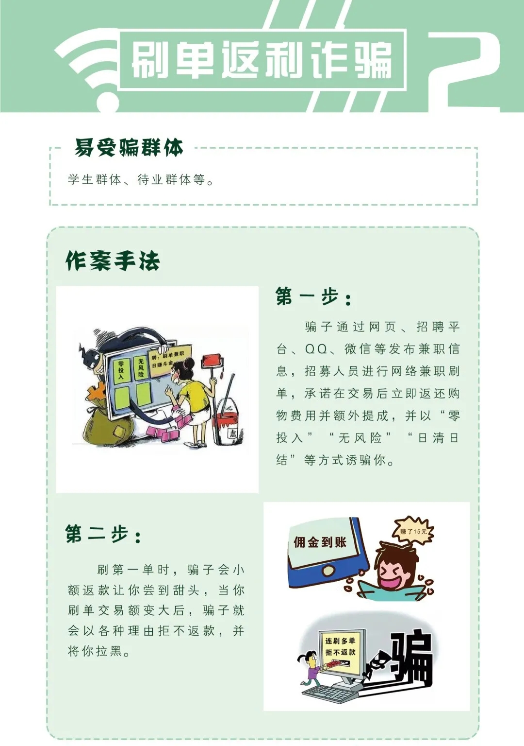 为进一步做好电信诈骗宣传工作,切实增强广大师生识骗、防骗意识,维护校园安全稳定工作,近日,保卫部采用宣传条幅、宣传版面、微视频、讲座和学生进宿舍等多种形式进行防诈宣传,收效明显,现将防诈内容进行整理,望广大师生转发,以提醒更多的人: